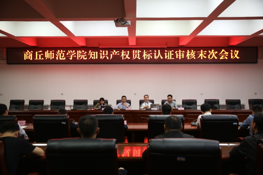 5月13日-14日,由国家认证认可监督管理委员会批准,知产(北京)认证服务有限公司派驻审核组,对商丘师范学院知识产权管理体系贯彻执行国家标准《高等学校知识产权管理规范》(以下简称“贯标”)情况进行现场认证审核。经认证会、现场考察、分组谈话等程序,审核组对照标准条款认真审阅了有关材料并详实记录。